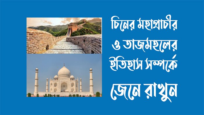 তেমনই দুইটা স্থান হলো চীনের মহাপ্রাচীর ও তাজমহল।এগুলো তৈরির পিছনে রয়েছে অনেক