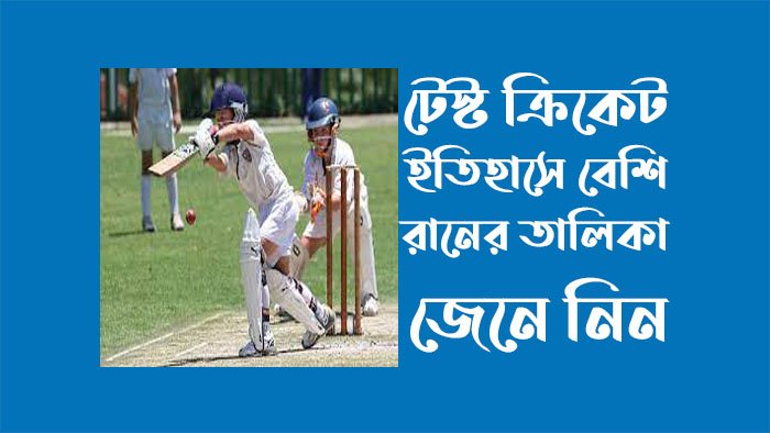প্রিয় পাঠক আজকে আমরা আলোচনা করব টেস্ট ক্রিকেট ইতিহাসের সর্বোচ্চ রানের তালিকা।
